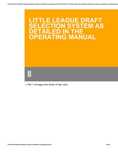 Free PDF Little league draft selection system operating manual iBooks ManyBooks